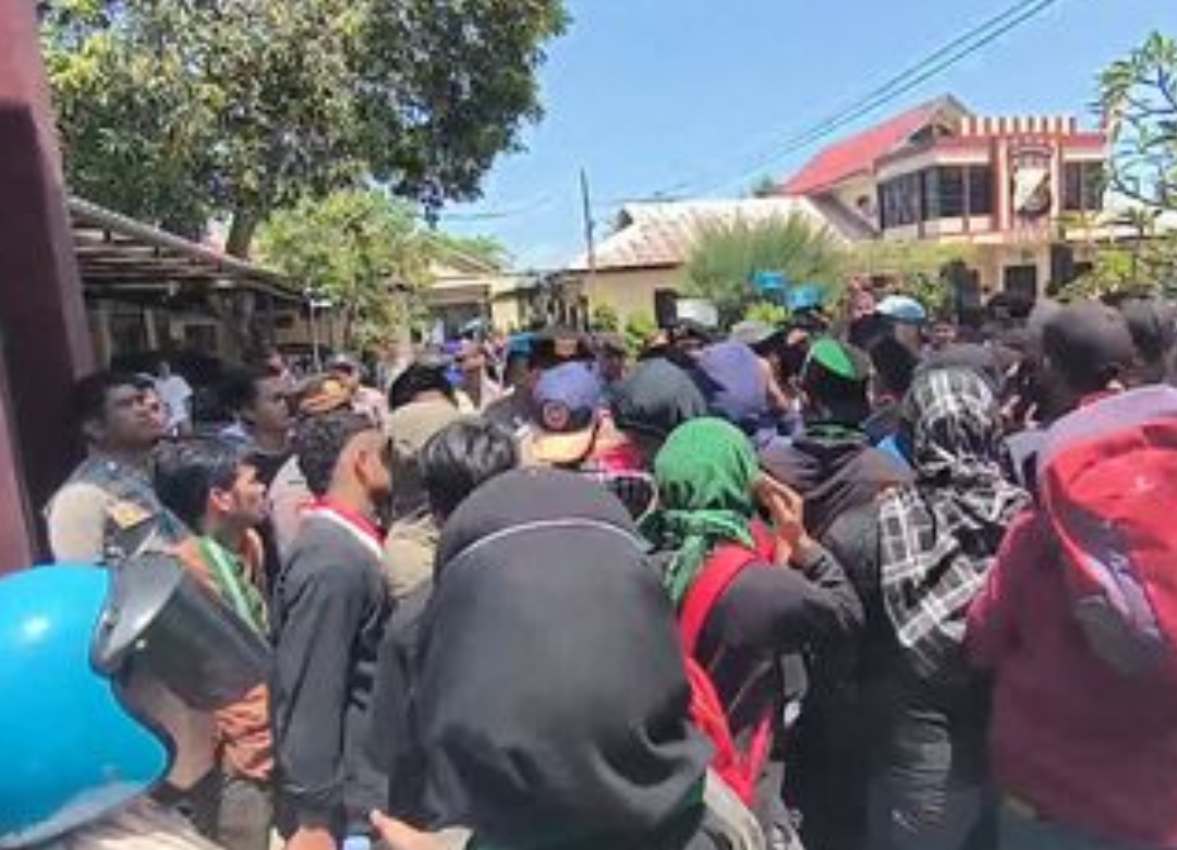 Ketegangan sempat terjadi ketika massa mencoba masuk ke halaman Polres dan hendak membakar ban bekas, namun dihalau aparat.