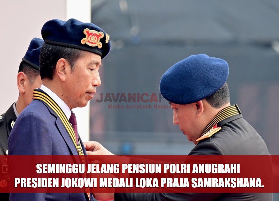 Kepolisian Republik Indonesia (Polri) menganugerahi Presiden Joko Widodo (Jokowi) Medali Kehormatan Loka Praja Samrakshana atas peran besarnya dalam pengembangan organisasi Korps Bhayangkara.